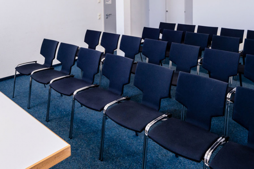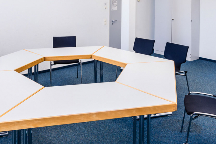 Der Seminarraum eignet sich für kleinere Gruppen, Gesprächskreise, Beratungen, Initiativen oder Kurse. Er ist komplett zu verdunkeln und wird so gerne von Mediengruppen genutzt.